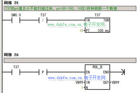 先初始化VB99=1賦值,然后定時器每中斷一次VB99中的1循環左移一次。用于控制程序執行。