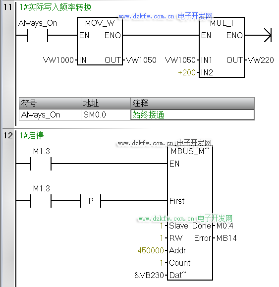 西門子plc S7-200smart 與臺達變頻器通訊Modbus梯形圖編程實例
