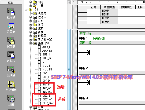 增、減指令,又稱自增和自減,是對無符號或有符號整數(shù)進行自動增加或減少1單位的操作,數(shù)據(jù)長度可以是字節(jié)、字或雙字。以指令盒形式編程,執(zhí)行結(jié)果為:IN+1->OUT;IN-1->OUT。
