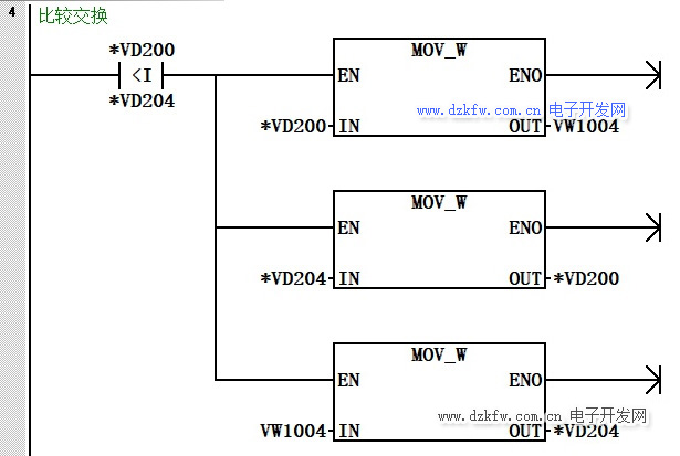 相鄰的兩個(gè)數(shù)比較,如果前面的數(shù)比后面的數(shù)小則兩個(gè)數(shù)交換。在第一輪比較的是VW0和VW2中的數(shù)值。