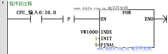 按下I0.0循環(huán)開始,循環(huán)體中的程序?qū)?zhí)行9次。