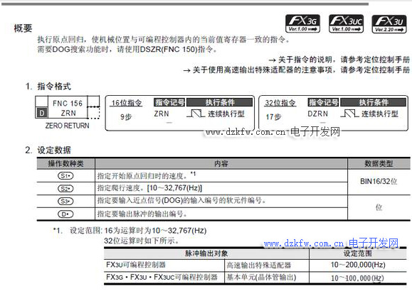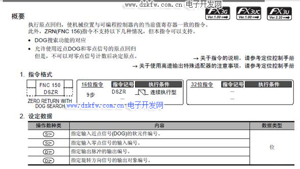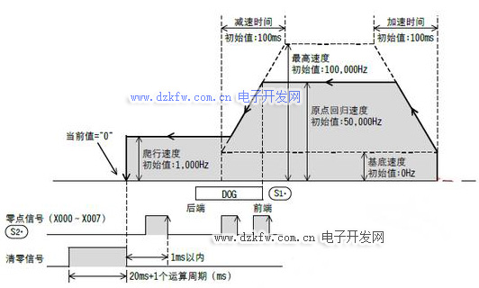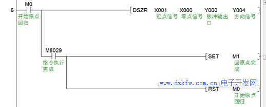 三菱給出了兩個原點回歸指令,ZRN和DSZR。ZRN為原點回歸指令,DSZR為帶DOG搜索的原點回歸指令。