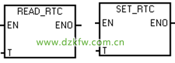 ①讀取時鐘指令:當指令EN端條件滿足時讀取實時時鐘指令從CPU 讀取當前時間和日期,并將其裝載到從字節地址T 開始的 8字節時間緩沖區中。