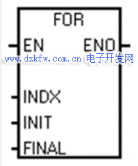 (2)使能輸入EN有效,循環體開始執行,執行到NEXT指令時返回,每執行一次循環體,當前值計數器INDX增1,達到終止值FINAL時,循環結束。