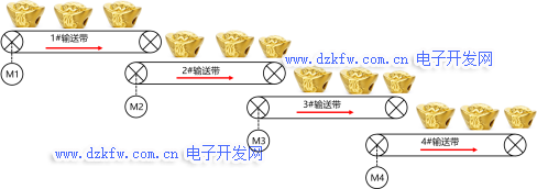 輸送帶順啟逆停示意圖