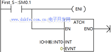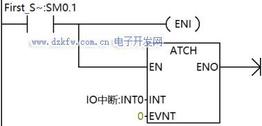 開(kāi)放中斷指令,PLC在RUN模式下,是中斷禁止?fàn)顟B(tài),需由此開(kāi)啟才能運(yùn)行。