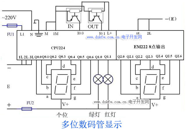 控制思路:西門子PLC的一個字節是8個位,而七段數碼管只需要7個輸出.