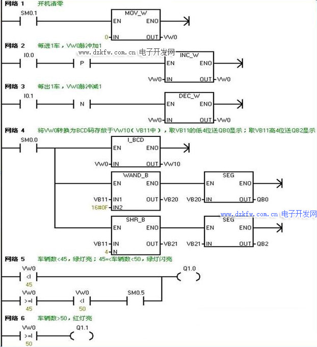 西門子PLC S7-200案例之商場停車場車輛出入數量統計梯形圖實例