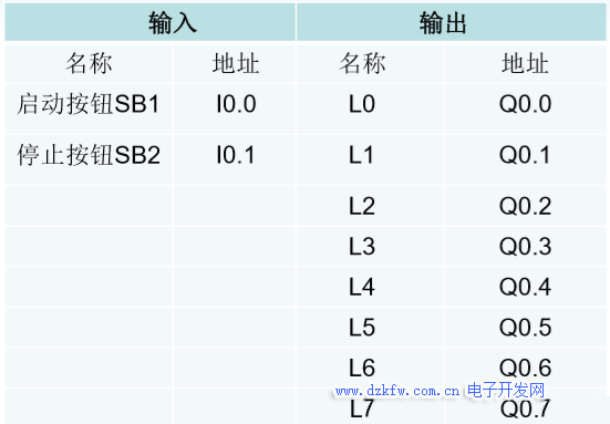 任務(wù)要求:要求通過啟動按鈕SB1使得8盞燈按照L0、L1~L7的順序亮,每隔1S亮一盞燈;再按L7、L6~L1、L0的順序滅,每隔1S滅一盞燈;如此循環(huán),直至按下停止按鈕SB2,全部燈熄滅,停止工作。