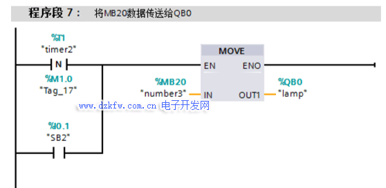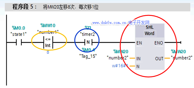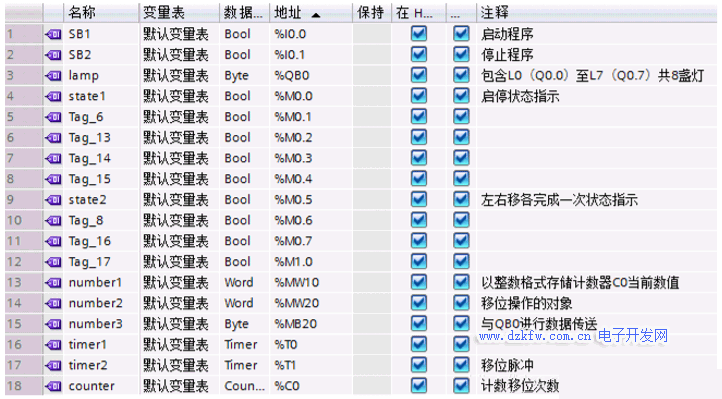 任務(wù)分析:根據(jù)控制任務(wù)說明,我們會想到,如果使用 Q0.0至Q0.7對應(yīng)控制L0至L7這8盞燈,要實現(xiàn)L0至 L7的順次亮起,我們只要使1順次填入Q0.0至Q0.7 即可,簡單說就是左移順次填1;而要使L7至L0順 次熄滅,我們只要使0順次填入Q0.7至Q0.0即可。