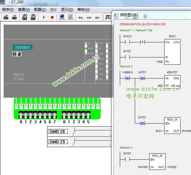 讀取西門子PLC計數器C1當前值,可用MOV_W指令傳到VW0中,VW0就是計數器C1的當前值。