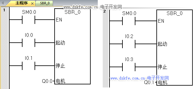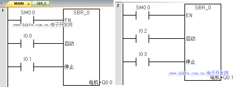 此時按下I0.0,Q0.0和Q0.1都會動作,這是因為,這兩個子程序共用一個輸出地址。