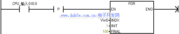 使能輸入EN有效,循環體開始執行,執行到NEXT指令時返回,每執行一次循環體,當前值計數器INDX增1,達到終止值FINAL時,循環結束。
