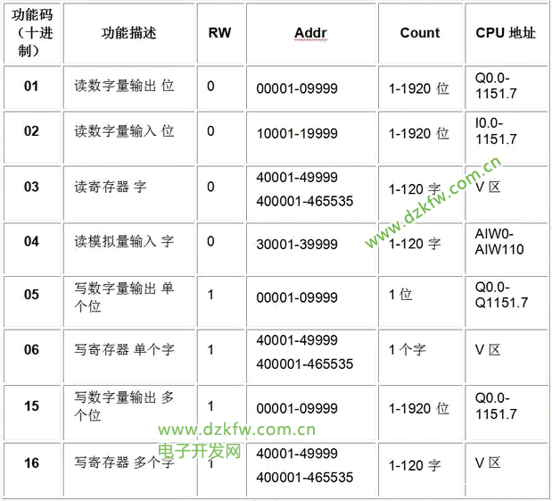 RW=0:確定讀取數據,(篩選出可能會使用的功能碼:01,02,03,04),