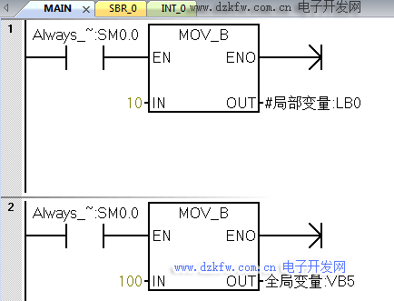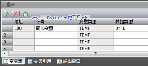 TEMP(臨時變量):暫時保存在局部數據區中的變量。只有在執行該POU時,定義的臨時變量才被使用,POU執行完后,不再使用臨時變量的數值。在主程序或中斷程序中.局部變量表只包含TEMP變量。子程序中的局部變量表還有下面的3種變量: