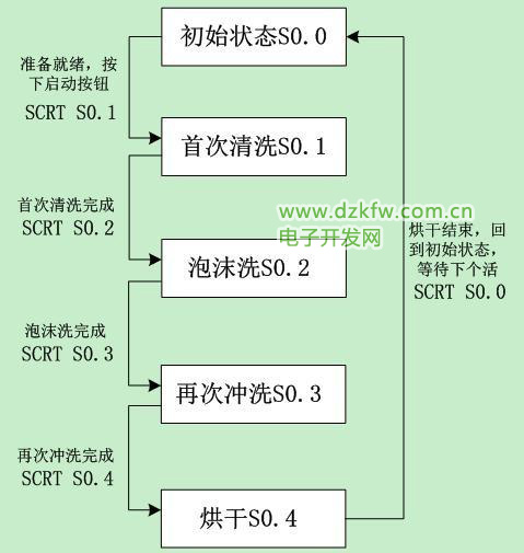 例如:一臺洗車機工作過程首次清洗,泡沫洗,再次沖洗和烘干。因此需要使用五個順序繼電器,分別是:初始等待,首次清洗,泡沫洗、再次沖洗,烘干。