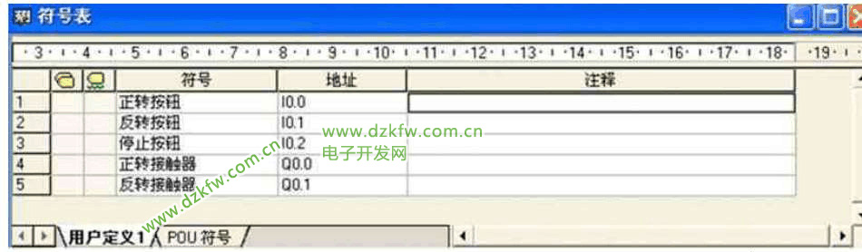 選中時(shí),輸入地址,程序中自動(dòng)出現(xiàn)的是符號(hào)編址。若選中“查看”菜單的“符號(hào)信息表”選項(xiàng),每一個(gè)網(wǎng)絡(luò)中都有程序中相關(guān)符號(hào)信息。