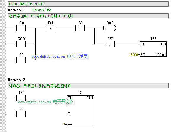 第二步:(通過多個計數器接力+SM0.5指令配合達到斷開2小時后繼續運行啟動運行功能)