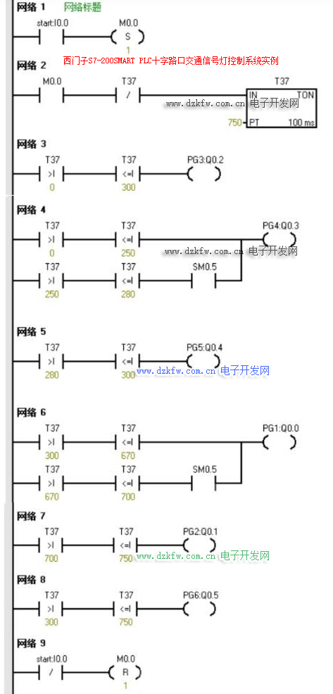 3、十字路口交通燈程序(梯形圖)