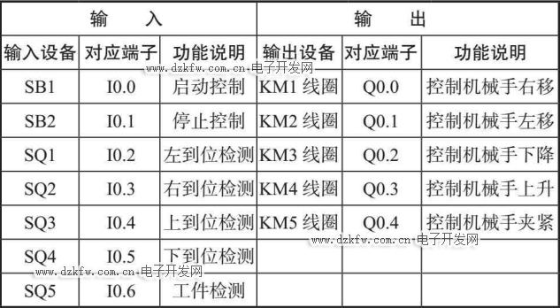 簡易機械手控制采用的輸入/輸出設備和對應的PLC端子見表5-3。