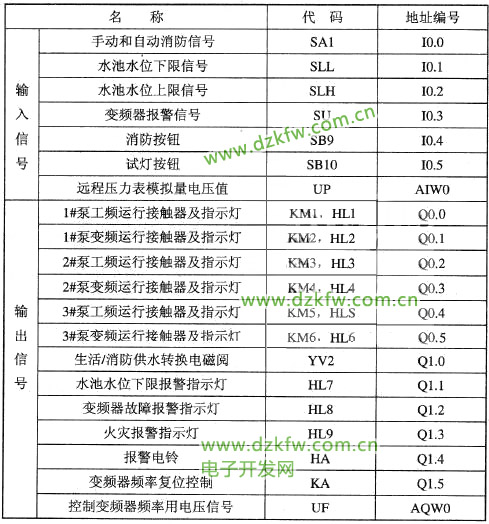 根據圖9-10及以上控制要求統計控制系統的輸入/輸出信號的名稱、代碼及地址編號如表9-7所示。水位上下限信號分別為I0.1、I0.2,它們在水淹沒時為0,露出時為1。