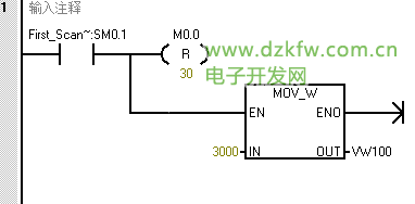 第一步:(上電初始化將完成標志位M點全部復位,同時將運行頻率30HZ傳送給VW100)