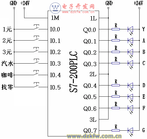 5. 在購買了汽水或咖啡后,Y0顯示當前的余額,按下“找零按鈕”后,Y0顯示00,表示已經清零