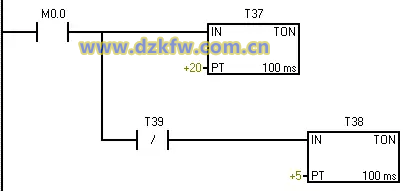 3. 打開示例程序或用戶自己編寫的控制程序,進行編譯,有錯誤時根據提示信息修改,直至無誤,用PC/PPI通訊編程電纜連接計算機串口與PLC通訊口,打開PLC主機電源開關,下載程序至PLC中,下載完畢后將PLC的“RUN/STOP”開關撥至“RUN”狀態。