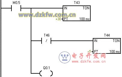 4. 打開示例程序或用戶自己編寫的控制程序,進行編譯,有錯誤時根據提示信息修改,直至無誤,用PC/PPI通訊編程電纜連接計算機串口與PLC通訊口,打開PLC主機電源開關,下載程序至PLC中,下載完畢后將PLC的“RUN/STOP”開關撥至“RUN”狀態。