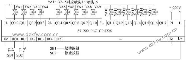 按起動按鈕后,噴頭就會按要求動作,整個過程是自動循環的,只有按下停止按鈕,才會全部停止。程序設計上以移位寄存器指令SHRB為主,程序中還多次出現比較指令用定時器的當前值與整數比較,這也是以往未被重用的一個功能。SHRB指令的使用方法參見第一章第二節。