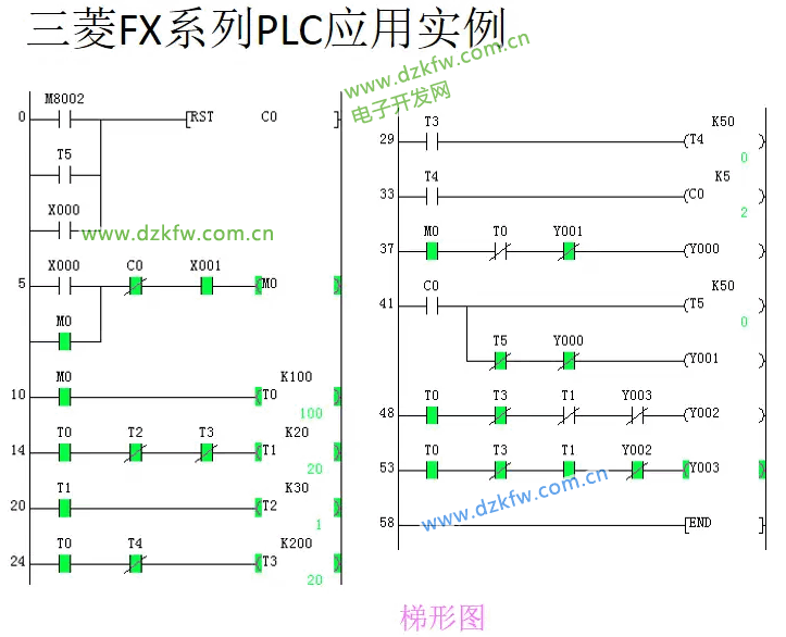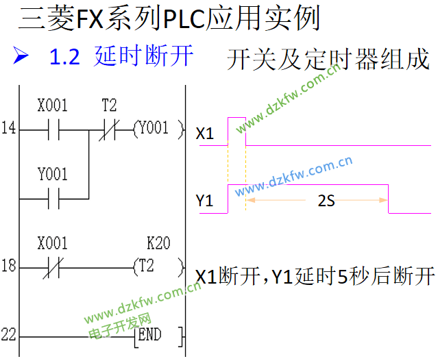 三菱plc FX-PLC設計通電和斷電均延時的梯形圖實例