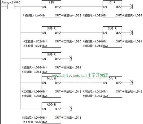 首先要把模擬量通道轉換成浮點數數據類型參與計算