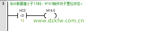 上述程序注解:當計數器值小于13 時,M14.0始終處于置位狀態。