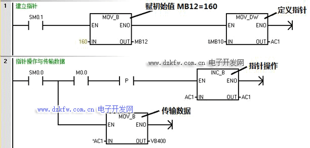 若是雙字(例如MD10至MD20),指針值必須加 4,即可指向下一個(gè)地址(MD14),若指針加1,即將指向MD11。