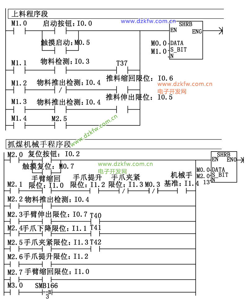 圖4 上煤檢測程序段    圖5 抓煤機械手程序段