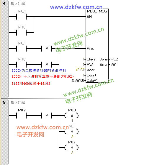 控制變頻器正轉(zhuǎn)運行,&VB100存儲了變頻器器的控制狀態(tài)字