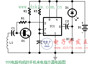由一個1.5V電池供電,檢測到來電時LED閃爍