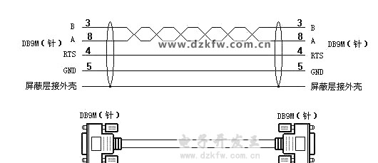 9針接口,需要注意的是通常情況下485通訊的9針接口,只需要將兩芯電纜接  到3號腳和8號腳上,3是信號“ -”,8是信號“+”。