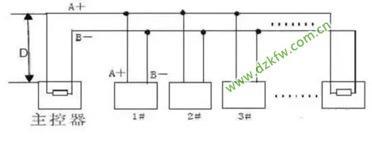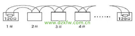 星形結構會產生反射信號,從而影響到485通信。總線到每個終端設備的分支線長度應盡量短,一般不要超出5米。分支線如果沒有接終端,會有反射信號,對通訊產生較強的干擾,應將其去掉,最好在RS485設備兩頭接有120Ω終端電阻。