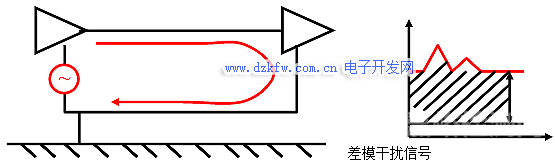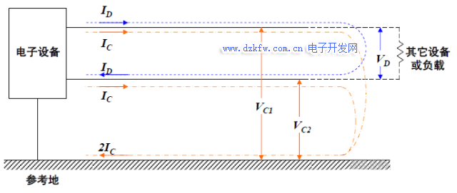 3.設備上的電路接線與地面之間存在電位差,使電路接線產生共模干擾電流。