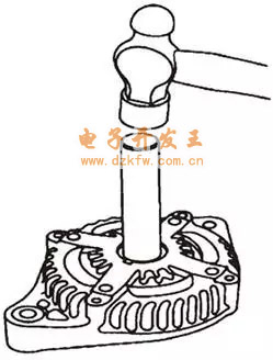 11. 用黃銅沖子和錘子敲出前軸承。