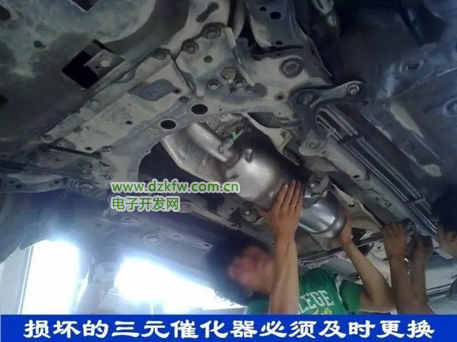 6、在車輛保養時做好對三元催化器的檢查。檢查內容有:排氣管有無異響,這種異響通常由排氣管接頭松動、三元催化器損壞、催化劑更換塞松動等原因造成;排氣管有無開裂或外殼壓扁之類的外觀損壞;排氣尾管有無催化劑顆粒排出。如果三元催化器外殼損壞或排氣尾管排出顆粒,均需更換。