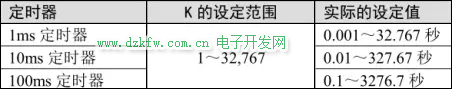 常數(shù) K 的設(shè)定范圍、實際的定時器設(shè)定值如下表所示