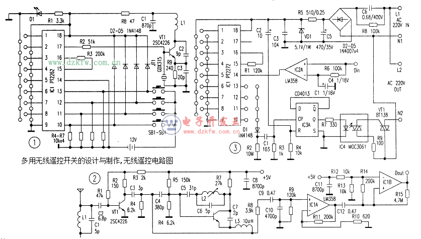 多用無線遙控開關的設計與制作,無線遙控電路圖