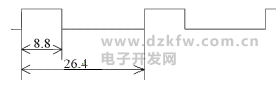 調制載波頻率一般在30khz到60khz之間,大多數使用的是38kHz,占空比1/3的方波,如圖2所示,這是由發射端所使用的