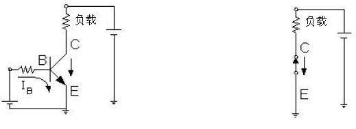 (c)此時(shí)集極(C)與射極(E) 之間形同段路,負(fù)載無(wú) 電流通過(guò) |