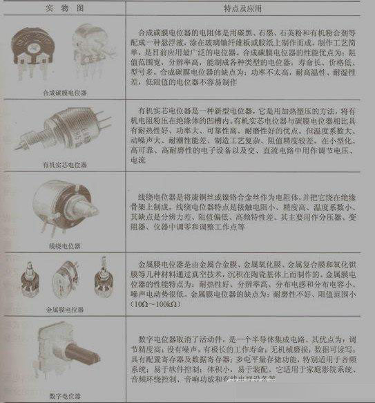 電位器的主要參數有標稱阻值、額定功率、分辨率、滑動噪聲、阻值變化特性、耐磨性、零位電阻及溫度系數等。