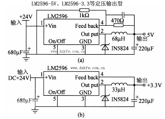 LM2596是降壓型電源管理單片集成電路的開關電壓調節器,能夠輸出3A的驅動電流,同時具有很好的線性和負載調節特性。固定輸出版本有3.3V、5V、12V,可調版本可以輸出小于37V的各種電壓。