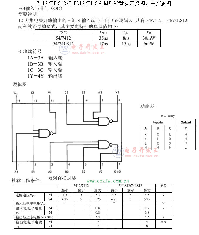 74ls12 3輸入三與非門 (oc) , 7412 三輸入與門電路
