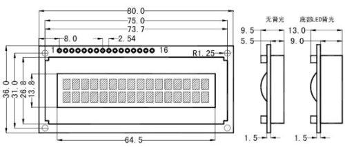 1602LCD分為帶背光和不帶背光兩種,基控制器大部分為HD44780,帶背光的比不帶背光的厚,是否帶背光在應(yīng)用中并無差別,兩者尺寸差別如下圖